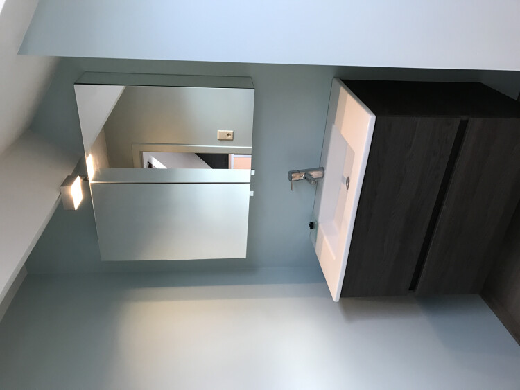 Badkamer met inloop douche en apart toilet gedeeld door 2 studenten.
